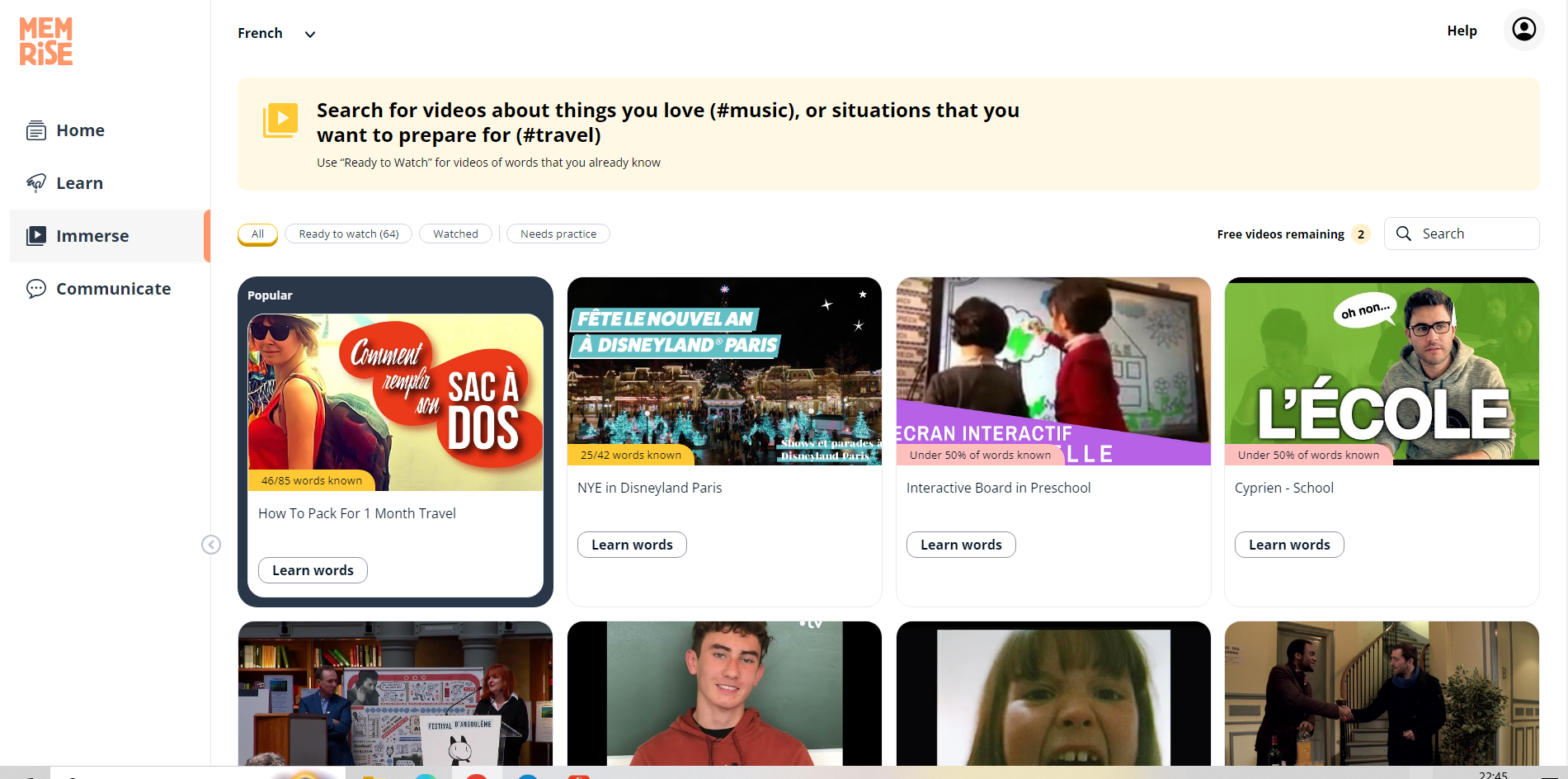 In the mobile version, the videos are arranged by difficulty, starting from the easiest. Tap the search box to see the list of topics and hashtags.