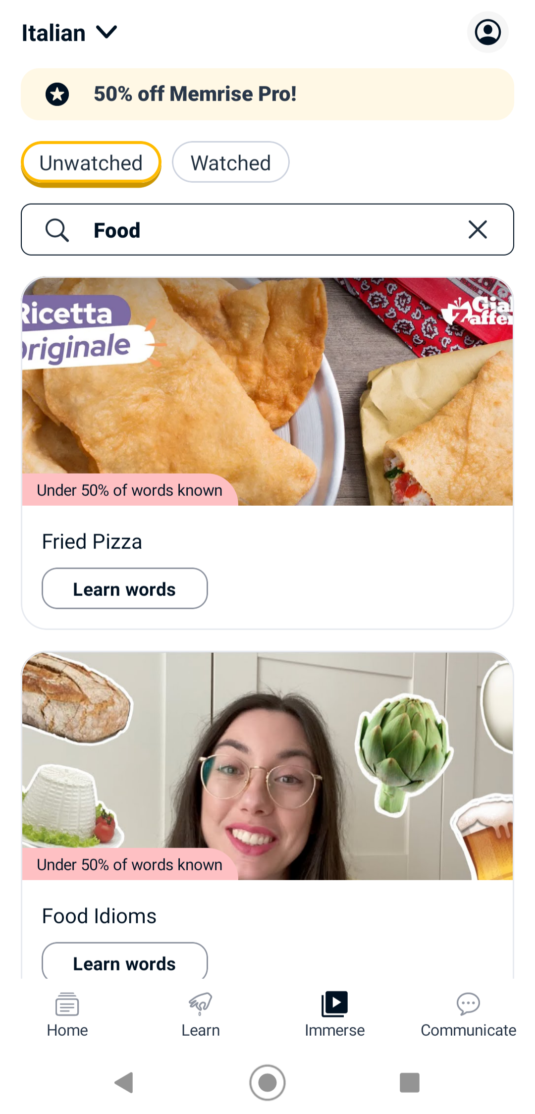 Based on your learning progress, the app estimates how easy a video might be for you to understand. Videos labeled "Ready to watch" contain only words you already know. Videos marked as "Under 50% of words known" may be more challenging.