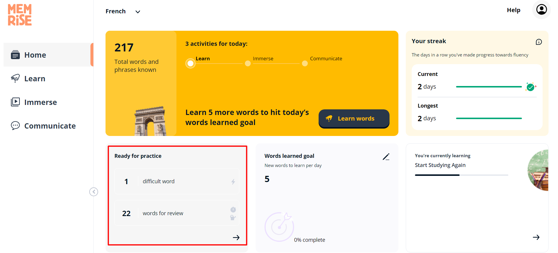 In the dashboard, click Ready for practice.