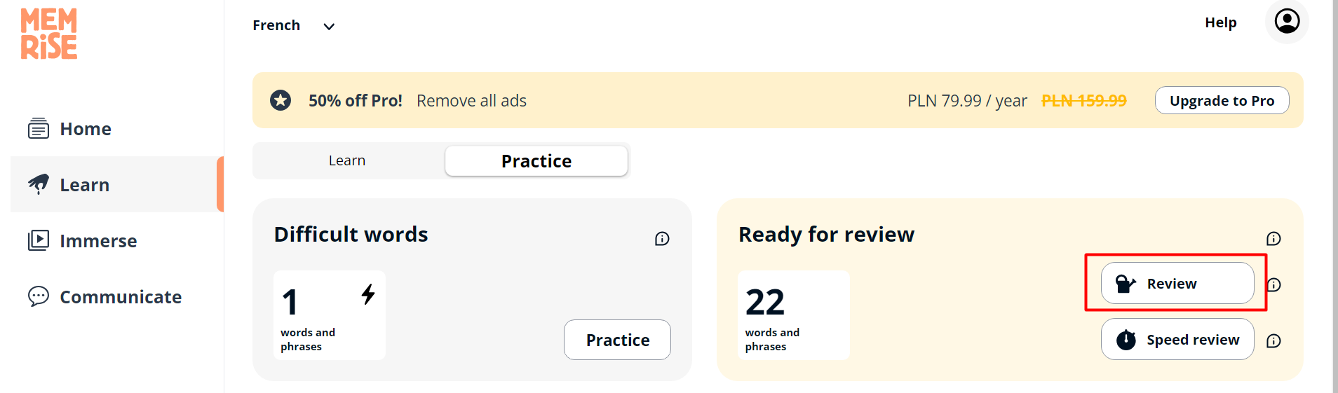 The next step is to practice the words you have learned and repeat them regularly. Memrise uses spaced repetition to remind you to review new words at the right time, so you remember them well.