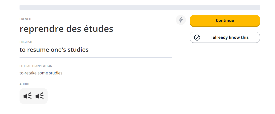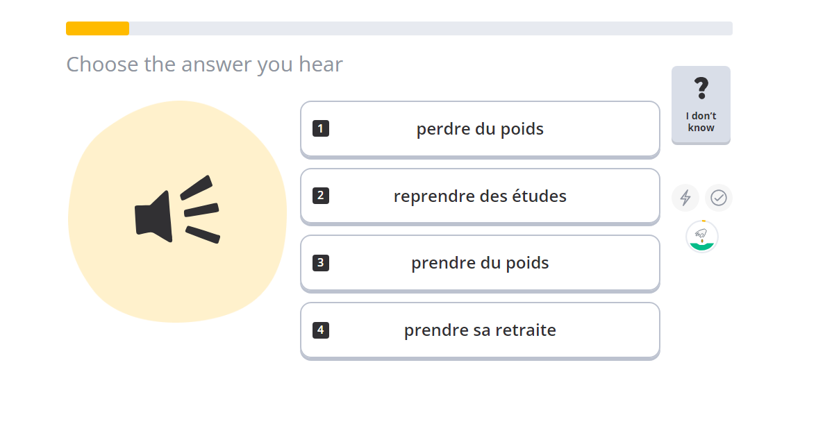 In this module, you find sets of flashcards (called scenarios) to learn new vocabulary. The scenarios are grouped by topic; you can also enter keywords in the search box. Scenarios marked with a padlock are only available in the premium version.