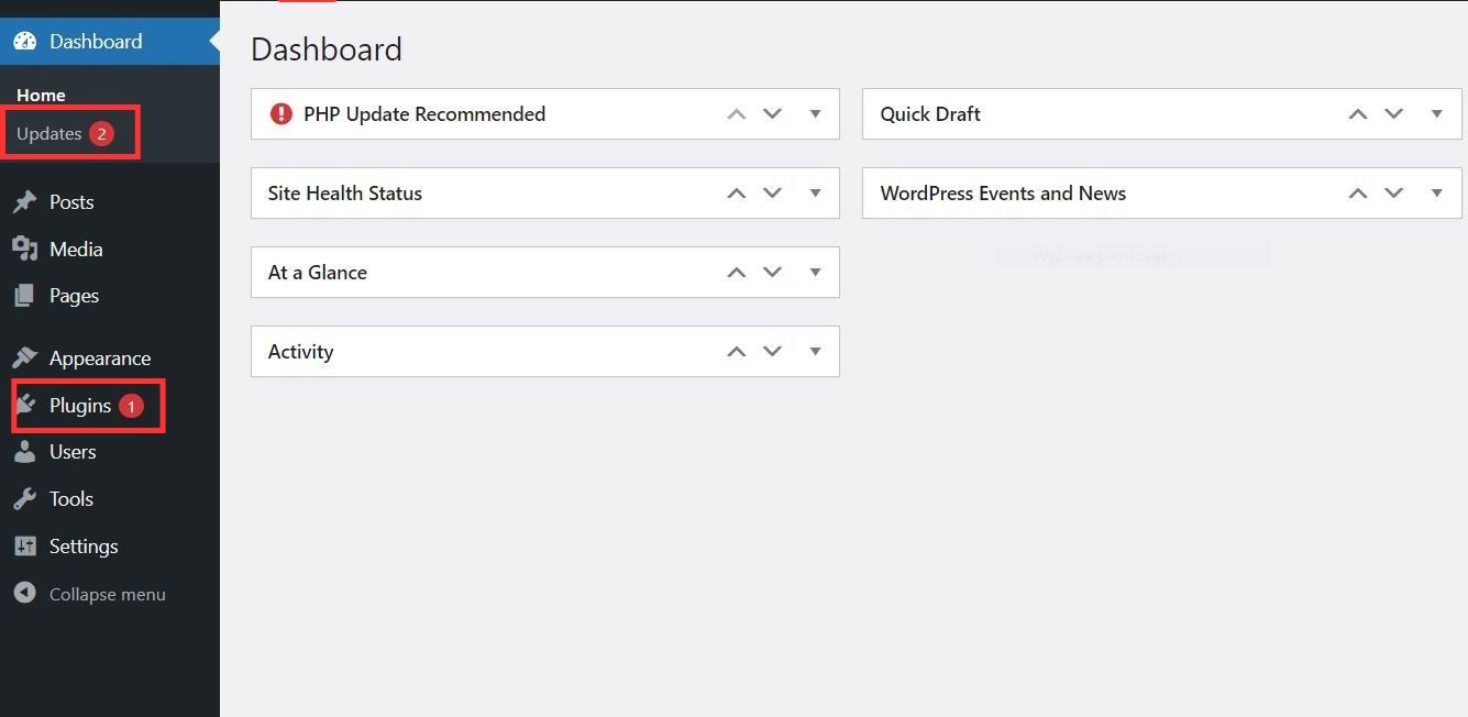 To keep your website secure and working well, make sure you update the plugins regularly. You will see update notifications on the home screen.